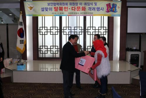 À̳¯ Çà»ç´Â Å»ºÏ¹Î, ´Ù¹®È°¡Á¤ µî 120¿©¸íÀÌ Âü¼®ÇÑ °¡¿îµ¥ º¸¾ÈÇù·ÂÀ§¿øµéÀº Âü¼®ÀÚµéÀ» À§ÇØ ÁغñÇÑ ¼±¹°À» Àü´ÞÇß´Ù.