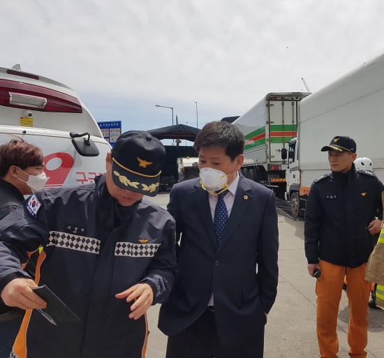 À§¿øÀåÀº ¡°°Ç³ÀÌ µ¿¹ÝµÇ¾î ÈÀç Áø¾Ð¿¡ ¾î·Á¿òÀÌ ÀÖÁö¸¸, °æ±âµµ ¼Ò¹æ°ø¹«¿ø°ú ±ºÆ÷½Ã ¼Ò¹æ°ø¹«¿øµéÀÇ ³ë·ÂÀÌ ÀÖ¾î Á¡Â÷ ÁøÈµÉ °ÍÀ¸·Î º¸Àδ١±°í ¸»ÇÏ¸é¼ ¡°±×·³¿¡µµ ±äÀåÀ» ´ÊÃßÁö ¸»°í ÁøÈ¸¦ À§ÇØ ³ë·ÂÇϵÇ, ¼Ò¹æ°ø¹«¿øµéÀÇ ¾ÈÀüÀÌ È®º¸µÈ »óȲ¿¡¼ ÁøÈÀÛ¾÷ÀÌ ÀÌ·ïÁú ¼ö ÀÖµµ·Ï °æ±âµµ¼Ò¹æÀ糺»ºÎ¿Í ±ºÆ÷¼Ò¹æ¼¿¡¼ ³ë·ÂÇØÁÙ °Í¡±À» ´çºÎÇÏ¿´´Ù.