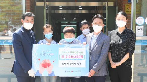 À̳¯ Àü´ÞµÈ ¼º±ÝÀº Áö³ 3¿ùºÎÅÍ ¾È»ê½Ã °øÁ÷ÀÚµéÀÌ Äڷγª19 ±Øº¹À» À§ÇØ ½Ê½ÃÀÏ¹Ý ¸ð¾Æ¿Â °ÍÀ¸·Î, À±È¼· ½ÃÀå°ú °ü°è Á÷¿øÀº Áö³ 12ÀÏ ¿ÂÀ¯ÇѼ¾ÅÍ, ¾È»ê½ÃÀå¾ÖÀÎÁÖ°£º¸È£½Ã¼³À» ¹æ¹®ÇØ ¼º±Ý 250¸¸¿øÀ» ÈÄ¿øÇѵ¥ ÀÌ¾î µÎ ¹øÂ° Àü´Þ½ÄÀ» °¡Á³´Ù.