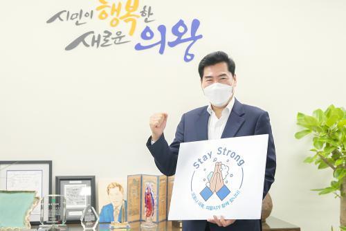 ½ºÅ×ÀÌ ½ºÆ®·Õ Ä·ÆäÀÎÀº µÎ ¼ÕÀ» ¸ð¾Æ ±âµµÇÏ´Â ±×¸²°ú ºñ´©°ÅǰÀ¸·Î ¼ÕÀ» ¾Ä´Â ·Î°í¿¡ ¡®Stay Strong¡¯À̶õ ¹®±¸¸¦ Àû¾î °³ÀÎÀ§»ý Áؼö·Î Äڷγª19 »çŸ¦ À̰ܳ»ÀÚ´Â Àǹ̸¦ ´ã°í ÀÖ´Ù.