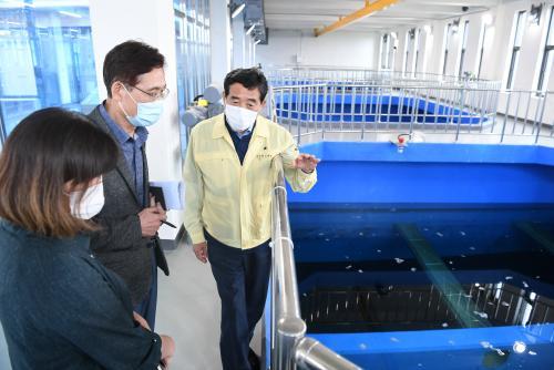 »çÁø=¾È»ê½Ã, À±È­¼· ¾È»ê½ÃÀåÀÌ ¾È»êÁ¤¼öÀåÀ» ã¾Æ ±ä±Þ ÇöÀåÁ¡°ËÀ» Çϰí ÀÖ´Ù.