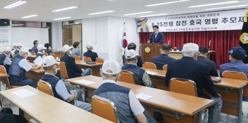 À̳¯ Çà»ç´Â ±è»óµ· ½ÃÀå, À±¹Ì°æ ½ÃÀÇÀå ¹× ½ÃÀÇ¿ø, 6.25ÂüÀüÀ¯°øÀÚȸ ȸ¿ø 40¿©¸íÀÌ Âü¼®ÇÑ °¡¿îµ¥ ÁøÇàµÇ¾úÀ¸¸ç, 6.25ÀüÀï 70ÁÖ³âÀ» ¸Â¾Æ ÂüÀüÀ¯°øÀÚ¿¡°Ô ÂüÀüÀ¯°øÀÚÀÇ Èñ»ý°ú Çå½Å¿¡ ´ëÇÑ °¨»çÀÇ ¸¶À½À» ´ãÀº ¸Þ´Þ Àü¼ö·Î ÂüÀüÀ¯°øÀÚ¿¡ ´ëÇÑ ¸í¿¹¿Í ÀÚ±à½ÉÀ» µå³ô¿´´Ù.