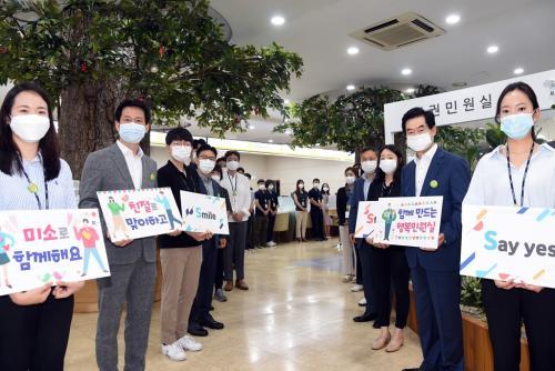 Ä£Àý3S´Â ¡®Stand up, Smile, Say yes¡¯ÀÇ ¾àÀÚ·Î °í°´À» ¸ÂÀÌÇÒ ¶§ ÀϾ, ¿ôÀ¸¸ç, ±àÁ¤ÀûÀ¸·Î ¸»ÇÏÀÚ´Â Àǹ̷Î, ½Ã¹ÎÀ» À§ÇÑ ¼¶±è ÇàÁ¤À» ÇൿÀ¸·Î ½ÇõÇÏÀÚ´Â ¶æÀ̶ó°í ¼³¸íÇß´Ù.