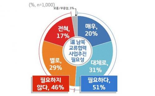 °æ±âµµ Â÷¿øÀÇ ³²ºÏ±³·ùÇù·Â »ç¾÷ ÃßÁø¿¡ ´ëÇØ¼´Â ¡®ÇÊ¿äÇÏ´Ù¡¯ 51%, ¡®ÇÊ¿äÇÏÁö ¾Ê´Ù¡¯ 46%·Î °¢°¢ Á¶»çµÆ´Ù.