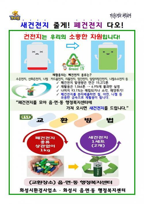 ¿À´Â 13ÀϺÎÅÍ ½Ç½ÃµÇ´Â ¡®Æó°ÇÁøÁö º¸»ó±³È¯»ç¾÷¡¯Àº °¡Á¤¿¡¼ »ç¿ëÇÑ Æó°ÇÀüÁö 1kg(¾à30°³)À» »õ°ÇÀüÁö(AA, AAA Áß ¼±ÅÃ) 1¼¼Æ®(2°³)·Î ±³È¯ÇØ ÁÖ´Â »ç¾÷ÀÌ´Ù.