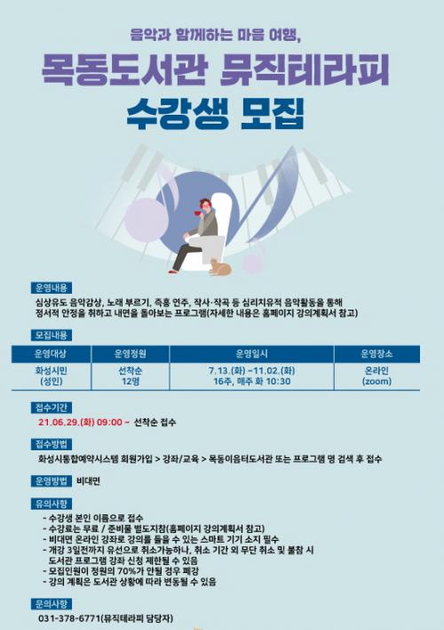 ¡®¸ñµ¿µµ¼°ü ¹ÂÁ÷Å×¶óÇÇ¡¯´Â µ¿Åº¸ñµ¿ÀÌÀ½Å͵µ¼°üÀÇ Æ¯ÈÁÖÁ¦ÀΡ®À½¾Ç¡¯À» ¼ÒÀç·Î Äڷγª Àå±âÈ·Î ÁöÄ£ ½Ã¹ÎµéÀÇ Á¤¼Àû ¾ÈÁ¤°ú ½ºÆ®·¹½º ÇØ¼Ò¸¦ µ½±â À§ÇÏ¿© ¸¶·ÃÇÑ ÇÁ·Î±×·¥ÀÌ´Ù.