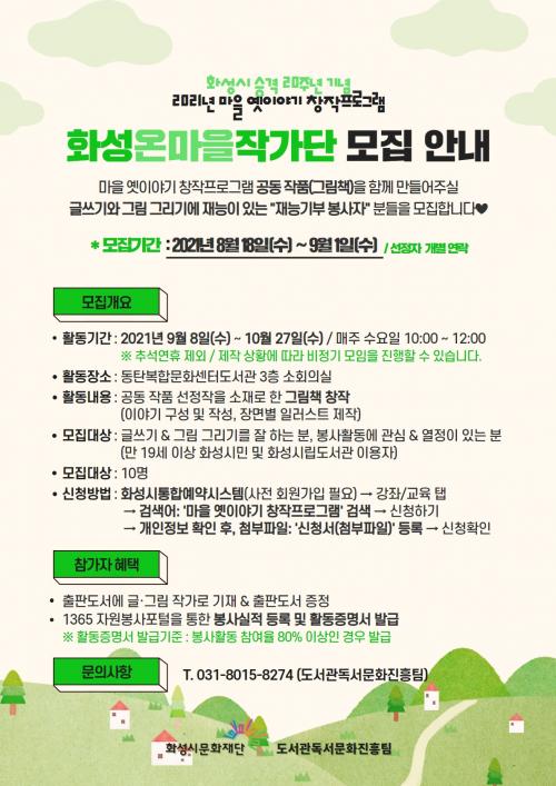 ±Û¾²±â¿Í ±×¸² ±×¸®±â¿¡ °ü½ÉÀÖ°í Áö¿ª ³» ºÀ»çȰµ¿¿¡ °ü½É°ú ¿Á¤ÀÌ ÀÖ´Â ºÐÀÌ¸é ´©±¸³ª Áö¿ø °¡´ÉÇϸç, Ȱµ¿ ±â°£Àº 9¿ù 8ÀϺÎÅÍ 10¿ù 27ÀϱîÁö ¾à µÎ ´Þ °£ÀÌ´Ù.
