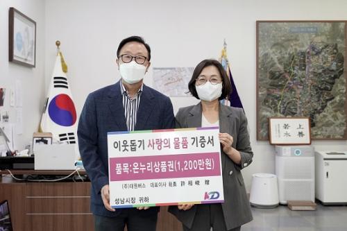 ¼º³²½Ã´Â À̳¯ ¿ÀÀü 10½Ã ½Ãû ½ÃÀå Áý¹«½Ç¿¡¼­ Àº¼ö¹Ì ¼º³²½ÃÀå°ú ±Ç¿À¼º ¢ßKD¿î¼Û±×·ì °æ¿µÁö¿øº»ºÎÀå °â ¢ß´ë¿ø¹ö½º Àü¹«ÀÌ»ç µîÀÌ Âü¼®ÇÑ °¡¿îµ¥ ¡®ÀÌ¿ôµ½±â »ç¶ûÀÇ ¹°Ç° ±âÁõ½Ä¡¯À» Çß´Ù.