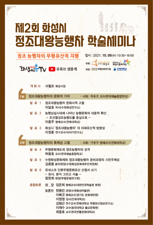 Çмú¼¼¹Ì³ª 1ºÎ¿¡¼´Â Á¤Á¶´ë¿Õ´ÉÇàÂ÷ÀÇ ¹®ÈÀû °¡Ä¡¸¦ ¾Ë¾Æº¸±â À§ÇØ Á¤Á¶´ë¿Õ´ÉÇàÂ÷ÀÇ ¹®È»çÀû °íÂû°ú ´ÉÇà»ó½Ç½Ã´ë¿¡ ³ªÅ¸³ ´ÉÇ๮ÈÀÇ ´ëÁßÀû È®»ê ¹æ¹ý, ȼº½Ã Áö¿ª Á¤Ã¼¼º°ú Á¤Á¶´ë¿Õ´ÉÇàÂ÷ÀÇ Àǹ̿¡ ´ëÇÑ °Àǰ¡ ÁøÇàµÇ¸ç 2ºÎ¿¡¼´Â Á¤Á¶´ë¿Õ´ÉÇàÂ÷ÀÇ ÃàÁ¦¼º °íÂûÀ» À§ÇØ ¹«Çü¹®ÈÁ¦µµ¿Í Á¤Á¶´ÉÇàÂ÷ÀÇ ¼º°Ý, ¼ö¿øÈ¼º¹®ÈÁ¦¿Í Á¤Á¶´ë¿Õ´ÉÇàÂ÷ Áغñ°úÁ¤ÀÇ ½Ã¹ÎÁÖü¼º, À¯³×½ºÄÚ Àηù¹«Çü¹®ÈÀ¯»ê ½Åû¼ ¾²±â µîÀÇ ¹ßÇ¥°¡ À̾îÁú ¿¹Á¤ÀÌ´Ù.