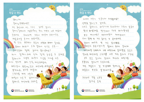 ±¹¸³¾î¸°ÀÌû¼Ò³âµµ¼°ü¿¡ ÃâǰÇÑ ÀÛǰ Áß »óºÀÃʵîÇб³ ±è¶óÀ± ÇлýÀÌ ¡ºÇÒ¸Ó´ÏÀÇ ¿©¸§ÈÞ°¡¡»¸¦ Àаí Á¦ÃâÇÑ ÇÑ±Û ¼Õ ÆíÁö°¡ ¿ì¼öÀÛÀ¸·Î ¼±Á¤, ¡®À¸¶ä»ó¡¯À» ¼ö»óÇß´Ù.