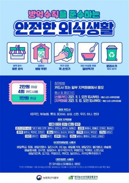 Áö¿ªÈÆó ¿Ü½ÄÇÒÀÎ Áö¿ø»ç¾÷Àº ÇູȼºÁö¿ªÈÆó·Î ¿Ü½Ä¾÷¼Ò¿¡¼ °áÀçÇϰųª ¹è´Þ ¾ÛÀ» ÅëÇØ 1ȸ 2¸¸ ¿ø ÀÌ»ó ÃÑ 4ȸ¸¦ °áÀçÇÏ¸é ´ÙÀ½´Þ 1¸¸ ¿øÀ» ij½Ã¹é ÇØÁÖ´Â À̺¥Æ®ÀÌ´Ù.