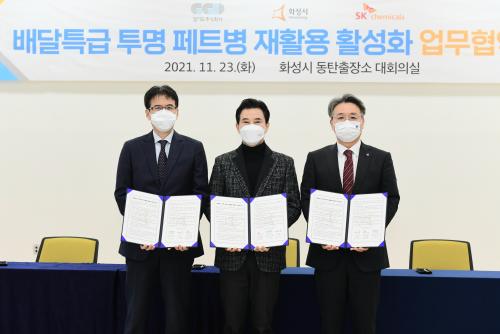 Çù¾à¿¡ µû¶ó ÄÚ¸®¾Æ°æ±âµµÁÖ½Äȸ»ç´Â ¹è´ÞƯ±Þ °¡¸ÍÁ¡°ú ¼ÒºñÀÚ¸¦ ´ë»óÀ¸·Î Åõ¸í ÆäÆ®º´ ¼ö°Å¿¡ Çù·ÂÇϱâ·Î ÇßÀ¸¸ç, SKÄɹÌÄ®Àº ¼ö°ÅµÈ ÆäÆ®º´À» Àç»ýÆäÆ®(r-PET)·Î °¡°øÇØ Æú¸®¿¡½ºÅ׸£ ¿ø·á »ý»ê¿¡ »ç¿ëÇÏ°í °¡¹æ°ú ÀÇ·ù, ¿ë±â µî ÀçȰ¿ë Á¦Ç° »ý»ê¾÷ü¿¡ °ø±ÞÇÒ °èȹÀÌ´Ù.
