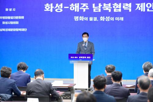 ÇÑÆí, ȼº½ÃÀÇ ³²ºÏÇù·Â Á¦¾È ¹ßÇ¥¿¡ ¡®Àü±¹ ³²ºÏ±³·ùÇù·Â Áö¹æÁ¤ºÎÇùÀÇȸ¡¯»óÀÓ´ëÇ¥ÀÎ ¿°Å¿µ ¼ö¿ø½ÃÀå, »ç¹«ÃÑÀå ±èº´³» ±¤ÁÖ ³²±¸Ã»Àå, °øµ¿´ëÇ¥ Á¤¿ø¿À ¼ºµ¿±¸Ã»Àå µî ȸ¿øµµ½ÃµéÀÌ »ç¾÷ ¼º°øÀ» ±â¿øÇÏ´Â ÀÀ¿ø ¸Þ½ÃÁö¸¦ Àü´ÞÇß´Ù.
