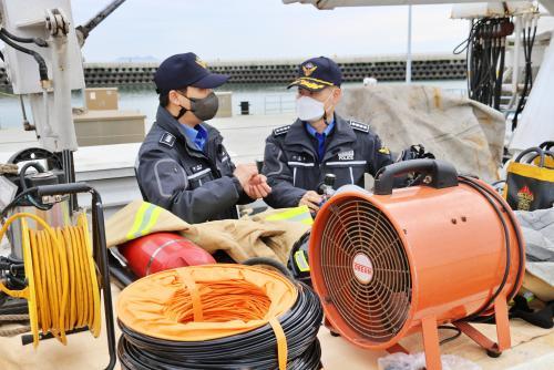 ¼ ¼ÀåÀº À̳¯ Àü¿ëºÎµÎ ¹× °æºñÇÔÁ¤¿¡ ÀåºñµÈ ¼ÒÈÆßÇÁ, ¼Òȱâ, ÈÀç°¨Áö±â µîÀÇ ÀÛµ¿ »óŸ¦ Á÷Á¢ »ìÆìº¸°í, »ç°í ´ëÀÀ ¸Å´º¾óÀ» Á¡°ËÇÏ´Â µî ¼±¹Ú ÈÀç ´ëÀÀ ż¼¸¦ ÀçÁ¡°ËÇß´Ù.