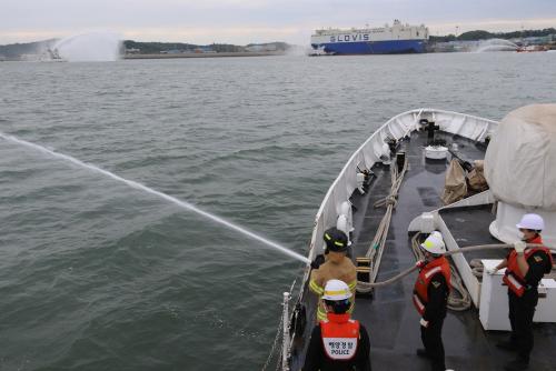 ÆòÅÃÇØ°æ °ü°èÀڴ¡°´ëÇü¼±¹Ú¿¡¼ ¼±¹Ú ÈÀç°¡ ¹ß»ý ÇÒ °æ¿ì¸¦ ´ëºñÇÏ¿© ¼Ò¹æ µî À¯°ü±â°ü °£ »ç°í´ëÀÀ Çù¾÷ü°è¸¦ Á¡°ËÇϰí, ½ÇÁ¦ ´ëÀÀÀ» ÇÒ ¼ö ÀÖ´Â ¹æ¾ÈÀ» ¸¶·ÃÇϱâ À§ÇØ ÈÆ·ÃÀ» ½Ç½ÃÇß´Ù"°í ¼³¸íÇß´Ù.