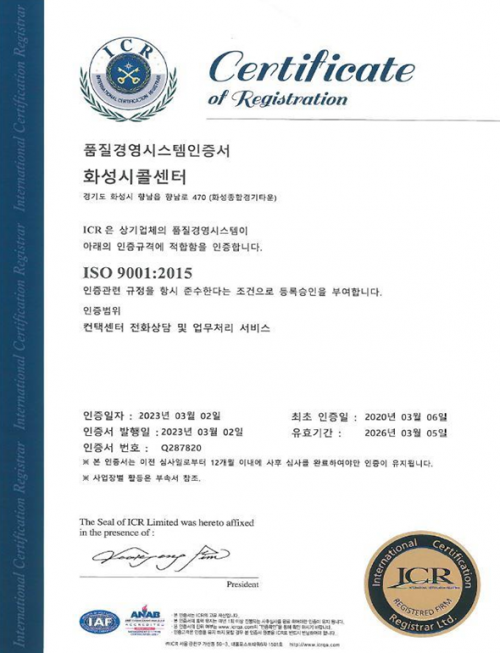 ½Ã´Â Áö³ 2014³â ù ÀÎÁõÀ» ȹµæÇÑ µÚ·Î 9³â ¿¬¼Ó °»½Å½É»ç¸¦ Åë°úÇϸç Äݼ¾ÅÍ ¾÷¹« Àü¹Ý¿¡ °ÉÄ£ ü°èÈ¿Í Ç¥ÁØÈ¸¦ ÀÌ·ï³Â´Ù.
