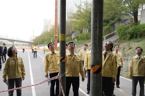 ¼º³²½ÃÀå°ú °ø¹«¿øµéÀº Á¤ÀÚ±³ ÁÖº¯¿¡ ¸ð¿©¼ ¹«³ÊÁø Á¤ÀÚ±³ ¾Æ·¡ÂÊÀÇ Àӽñ¸Á¶¹° (Àè¼Æ÷Æ®)¿¡ Á¢±ÙÇÏ¸é¼ ´Ù¸¥ »ç¶÷µéÀº ´Ù Âø¸ðÇÑ ¾ÈÀü¸ð Á¶Â÷µµ Âø¸ðÇÏÁö ¾Ê°í ÁÖº¯À» µ¹¾Æº¸´Â ¾ÈÀüºÒ°¨ÁõÀÌ ¿ì·ÁµÈ´Ù.