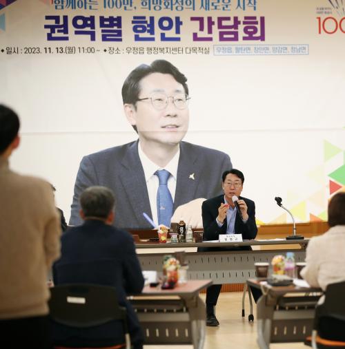 Á¤¸í±Ù ȼº½ÃÀåÀº ¡°¿ì¸®½Ã´Â ±Ç¿ªº° Ư»öÀÌ ´Ù¸£°í °ü½É»ç°¡ ´Ù¾çÇÏ´Ù¡±¸ç, ¡°¸ðµç Áö¿ª ºüÁü¾øÀÌ Ã£¾Æ°¡ ÁÖ¿äÁ¤Ã¥¿¡ ´ëÇØ ¼³¸íÇÏ°í ½Ã¹ÎµéÀÇ ÀǰßÀ» ¼ö·ÅÇÏ¿© ÁÖ¿ä»ç¾÷À» ÃßÁøÇϰڴ١±°í ¸»Çß´Ù.