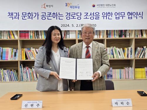 °æ·Î´çÀ» ´ëÇ¥ÇØ Çù¾àÀ» ü°áÇÑ ¹ÚÇмø (»ç)´ëÇѳëÀÎȸ ȼº½ÃÁöȸÀåÀº ¡°À̹ø Çù¾àÀ» ÅëÇØ °æ·Î´ç ¾î¸£½ÅµéÀÌ Ã¥À» ÅëÇØ »õ·Î¿î ¼¼»óÀ» °æÇèÇϰí ÀþÀº ¼¼´ë¿ÍÀÇ ´ëÈ¿¡µµ Ȱ·ÂÀ» ¾òÀ» ¼ö ÀÖÀ» °ÍÀ¸·Î ±â´ëµÈ´Ù¡±¸ç "µµ¼ °ø±Þ ¿Ü¿¡µµ µ¶¼ Åä·Ðȸ, °¿¬È¸ µîÀ» ÅëÇØ ¾î¸£½ÅµéÀÇ »çȸÀû Âü¿©¸¦ µ¶·ÁÇÒ °èȹ"À̶ó°í ¹àÇû´Ù.