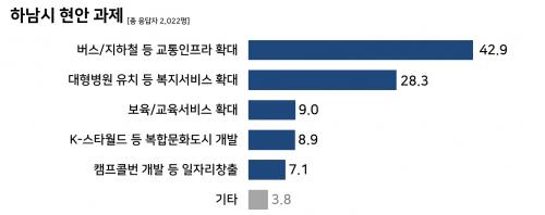 ¡®Çϳ²½Ã Çö¾È °úÁ¦¡¯ Æò°¡¿¡¼´Â ½Ã¹Î 42.9%°¡ ¡®±³ÅëÀÎÇÁ¶ó È®´ë¡¯¸¦ ¼±ÅÃÇß´Ù. ÀÌ´Â ¼¿ï·Î ÃâÅð±ÙÇÏ´Â ½Ã¹ÎµéÀÌ Çϳ²½Ã¿¡¼ ´ëÁß±³Åë ÆíÀǼºÀ» ´õ¿í Çâ»óÇØ ³ª°¡±æ ¹Ù¶ó´Â ¸¶À½ÀÌ ¹Ý¿µµÈ °á°ú·Î ÇØ¼®µÈ´Ù.