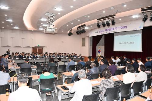 ÀÌÇöÀç ½ÃÀåÀº À̳¯ ½Ã¹ÎÂü¿© ÁÖ°£È¸ÀÇ¿¡¼ ¡ã(µµ½Ã°³¹ß)ÇѰ±³·®(¼ö¼®´ë±³) ÃßÁøÇöȲ ¡ã(µµ½Ã°³¹ß)µ¿¼¿ïº¯Àü¼Ò ¿Á³»È ¹× Áõ¼³ ºÒÇã ¡ã(¹®È)Á¦35ÁÖ³â Çϳ²½Ã¹ÎÀÇ ³¯ ±â³ä½Ä ÃßÁø ¹× °¡À»Ã¶ ´ëÇ¥ÃàÁ¦ ¾È³» ¡ã(º¸°Ç¡¤º¹Áö)±¤Áֽà ÈÀå½Ã¼³ °Ç¸³À» À§ÇÑ ¾÷¹«Çù¾à(MOU) ü°á ¹× º¸¹Ù½ºº´¿ø °³¿ø ÃßÁøÇöȲ ¡ã(±³À°)Çϳ²½Ã Æò»ýÇнÀ ÃßÁø ¼º°ú µî ÁÖ¿ä Çö¾ÈÀ» ½Ã¹Îµé°ú ³íÀÇÇß´Ù.