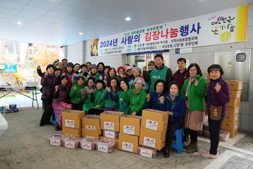 À̹ø »ç¶ûÀÇ ±èÀ峪´® Çà»ç´Â Áö¿ª »çȸÀÇ ¾î·Á¿î ÀÌ¿ôµé¿¡°Ô ±èÀåÀ» ³ª´©´Â ÀÇ¹Ì ±íÀº Çà»ç·Î, ½ÅÀå1µ¿ »õ¸¶À»ÇùÀÇȸ¡¤ºÎ³àȸ, Áö¿ª»çȸº¸ÀåÇùÀÇü°¡ ÁÖ°üÇϰí ÁÖ¹ÎÀÚġȸ, ÅëÀå´Ü, ¹Ù¸£°Ô»ì±âÀ§¿øÈ¸ µî ½ÅÀå1µ¿ À¯°ü´Üü ȸ¿ø 60¸íÀÌ ÇÔ²² Âü¿©ÇÏ¿´´Ù.