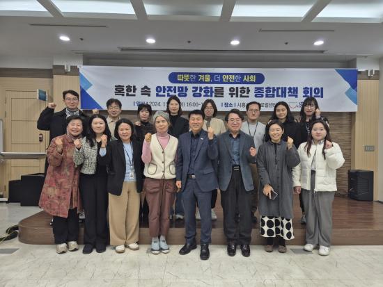 Âü¼®ÀÚµéÀº ºÎ¼ ¹× ±â°üº° ÃßÁø °èȹÀ» °øÀ¯ÇÏ¸ç °Ü¿ïö º¹Áö »ç°¢Áö´ë ÁýÁß ¹ß±¼, ½ÃÈïµ¹º½SOS¼¾ÅÍ µ¹º½¼ºñ½º Áö¿ø, À§±â ³ë¼÷ÀÎ Á¶±â ¹ß°ß ¹× À§±â ´ëÀÀü°è ±¸Ãà, Ãë¾à ³ëÀÎ ÇÑÆÄ ´ëÀÀ°ü¸®, ³ëÀοä¾ç½Ã¼³ ÇÑÆÄ ´ëºñ ¾ÈÀü Á¡°Ë ¸ð´ÏÅ͸µ °È, ÁßÁõÀå¾ÖÀΰ¡±¸ Ȱµ¿Áö¿ø ¼ºñ½º Áö¿øÃ¼°è °È, µå¸²½ºÅ¸Æ® Ãë¾à°èÃþ ¾Æµ¿¤ý°¡Á· °Ü¿ïö À§±â ´ëÀÀ, ´Ù¹®È°¡±¸ µ¿Àý±â ¾ÈÀü»ç°í ¹× °Ç°°ü¸® öÀú, ȤÇѱâ ÁÖ°Å Ãë¾à°èÃþ ÁýÁß °ü¸® µî µ¿Àý±â À§±â°¡±¸ º¸È£¸¦ À§ÇÑ ´ëÃ¥À» ³íÀÇÇß´Ù.