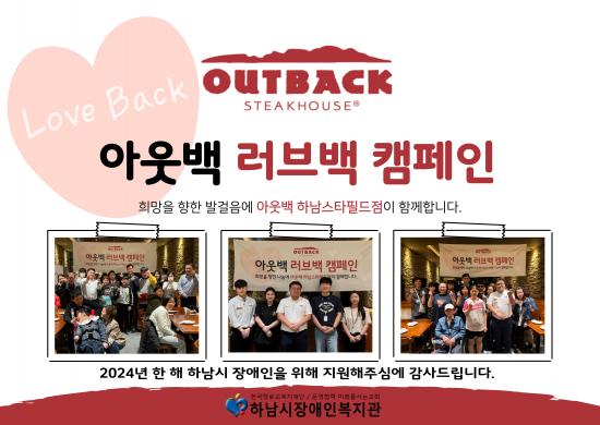 Çϳ²½ÃÀå¾ÖÀκ¹Áö°ü ¹Îº¹±â °üÀåÀº ¡°Çϳ²½Ã ³» Àú¼Òµæ Àå¾ÖÀÎÀ» À§ÇØ ³× ¹øÂ° ¾Æ¿ô¹é ·¯ºê¹é Ä·ÆäÀÎÀ» Áö¿øÇØÁØ ¾Æ¿ô¹é Çϳ²½ºÅ¸ÇʵåÁ¡ ¿ÀÁ¤±Ý Á¡ÁÖ´Ô°ú °ü°èÀںе鲲 °¨»ç¸¦ µå¸°´Ù¸ç, ¡°2025³â¿¡µµ ¾Æ¿ô¹é Çϳ²½ºÅ¸ÇʵåÁ¡°ú ÇÔ²² ¿Ü½ÄÁö¿øÀÌ ÇÊ¿äÇÑ Àú¼Òµæ Àå¾ÖÀεéÀÇ »îÀÇ Áú Çâ»óÀ» À§ÇØ ³ë·ÂÇÏ´Â Çϳ²½ÃÀå¾ÖÀκ¹Áö°üÀÌ µÇ°Ú´Ù.¡±¶ó°í ¸»Çß´Ù.