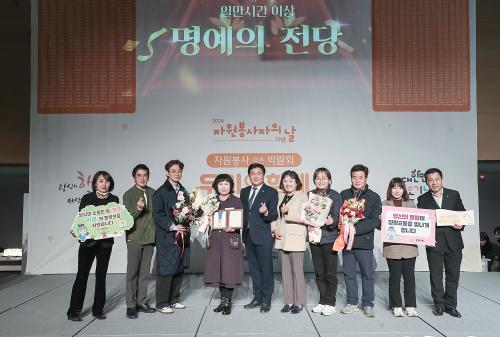 ÀÚ¿øºÀ»çÀÚ¿Í Âü¼®ÀÚ ¸ðµÎ°¡ ÇÔ²²ÇÏ´Â ÆÛÁñ ÆÛÆ÷¸Õ½º¸¦ ½ÃÀÛÀ¸·Î ½ÃÀÛµÈ ½Ã»ó½Ä¿¡¼´Â ÃÖ¿¬¼Ò ÀÚ¿øºÀ»çÀÚ°¡ Àϸ¸ ½Ã°£ ÀÌ»ó ºÀ»çÇÑ ÀÚ¿øºÀ»çÀÚ¿¡°Ô Á¸°æÀÇ ¸¶À½À¸·Î ¡®¸í¿¹ÀÇ Àü´ç¡¯ ÈÆÀåÀ» Àü´ÞÇßÀ¸¸ç, ¿ì¼ö ÀÚ¿øºÀ»çÀÚ °¨»çÆÐ Àü´Þ½Ä, ÀÚ¿øºÀ»ç Ȱ¼ºÈ À¯°ø ǥâ µîÀÌ ÁøÇàµÆ´Ù.