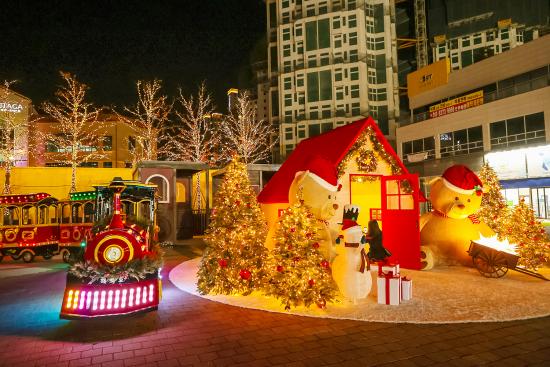 ¾ß¿Ü ±¤Àå¿¡´Â Å©¸®½º¸¶½º Æ÷ÅäÁ¸ÀÌ ¼¼¿öÁ³´Ù. Æ®¸®¿Í »êŸ ¸ðÀÚ¸¦ ¾´ ´ëÇü °õµ¹ÀÌ ÀÎÇü, ´«»ç¶÷°ú ¼±¹°»óÀÚµé±îÁö ´Ù¾çÇÑ ¿ÀºêÁ¦µéÀÌ ¿¬¸»ÀÇ Á¤Ã븦 ´õÇÑ´Ù. ¹ãÀÌ µÇ¸é »êŸ¸¶À»Àº ´õ Ȱ±â¸¦ ¶è´Ù. ´Ã¾î¼± ÆØ³ª¹«µéÀº ºÒºûÀ» ¹àÈ÷°í »êŸ°õµéÀÌ Áö۰í ÀÖ´Â Áý¿¡´Â ºÒÀÌ ÄÑÁø´Ù.