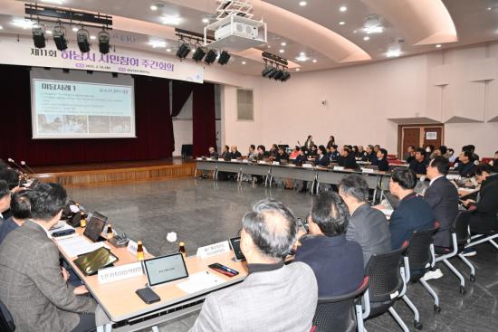 ÇÑÆí, ¡®½Ã¹ÎÂü¿© ÁÖ°£È¸ÀÇ¡¯´Â °ø¹«¿ø Áß½ÉÀÇ È¸ÀÇ¿¡¼ ¹þ¾î³ª, ´Ù¾çÇÑ ½Ã¹ÎµéÀÇ ¸ñ¼Ò¸®¸¦ Á÷Á¢ µè°í ½ÃÁ¤¿¡ ¹Ý¿µÇϱâ À§ÇØ ºÐ±âº°·Î ¿¸®°í ÀÖ´Ù. À̳¯ ȸÀÇ¿¡´Â À±ÅÂÇö Á¤Ã¥¸ð´ÏÅ͸µ´Ü ´ÜÀå, Çö±³Å ÁÖ¹ÎÀÚġȸ ÇùÀÇȸÀå, Àå¼¼Áø Çϳ²½Ã º¸ÈÆÇùÀÇȸ ȸÀå, À±¹Ì¾Ö °æ±âµµ ¿©¼º´ÜüÇùÀÇȸ Çϳ²½ÃÁöȸ ȸÀå µî ½Ã¹Î´ëÇ¥¿Í Çϳ²½Ã °£ºÎ°ø¹«¿ø 140¿©¸íÀÌ Âü¼®Çß´Ù.