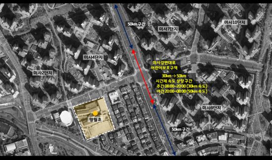 À̹ø Á¶Ä¡´Â ½Ã¹ÎµéÀÇ ºÒÆíÀ» ÁÙÀÌ°í ±³Åë È帧À» °³¼±Çϱâ À§ÇÑ °ÍÀ¸·Î, Â÷·® ÅëÇà·®ÀÌ ¸¹Àº °£¼±µµ·ÎÀÎ Çϳ²´ë·Î(½ÅÀåÃÊ)¿Í ¹Ì»ç°º¯´ë·Î(¸Á¿ùÃÊ) ¾î¸°À̺¸È£±¸¿ªÀÇ ¼Óµµ Á¦ÇÑÀ» Á¶Á¤Çß´Ù.
