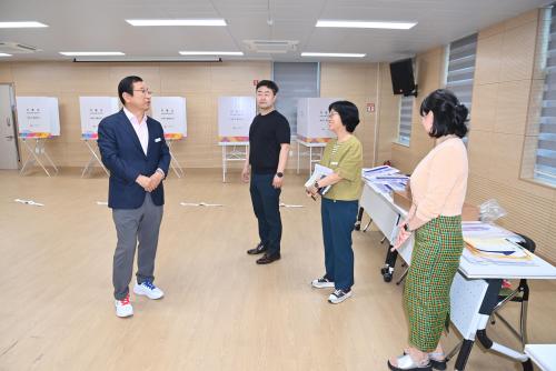 ÀÌ ½ÃÀåÀº ½ÅÀå1µ¿ ÇàÁ¤º¹Áö¼¾ÅÍ º°°ü¿¡ ¸¶·ÃµÈ ½ÅÀå1µ¿ ÅõÇ¥¼Ò¿Í ¹Ì»ç1µ¿ ÇàÁ¤º¹Áö¼¾ÅÍ¿¡ ¼³Ä¡µÈ ¹Ì»ç1µ¿ Á¦1ÅõÇ¥¼Ò¸¦ Â÷·Ê·Î ¹æ¹®ÇØ, ±âÇ¥¼Ò, µ¿¼± È®º¸, ÅõÇ¥ ¾È³» Ç¥ÁöÆÇ µîÀÇ ÅõÇ¥¼Ò Áغñ»óȲÀ» Á¡°ËÇß´Ù.