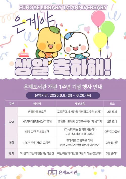 6¿ù 9ÀϺÎÅÍ 26ÀϱîÁö ¾à 3ÁÖ°£ ¿î¿µµÇ´Â °³°ü 1Áֳ⠱â³äÇà»ç´Â »ýÀÏ ÆÄƼ Æ÷ÅäÁ¸, ¡®ÇØÇǹú½ºµ¥ÀÌ(HAPPY BIRTHDAY) Àº°è¡¯(»ýÀÏ ÃàÇÏ ¸Þ½ÃÁö ³²±â±â), ³»°¡ ±×¸° Àº°èµµ¼°ü, ´Ï(°¡) ¾´ ³»(°¡) ¾´ ±×¸²Ã¥(¸±·¹ÀÌ ±×¸²Ã¥ ¾²±â) µî ½Ã¹Î ´©±¸³ª ÀÚÀ¯·Ó°Ô Âü¿©ÇÒ ¼ö ÀÖ´Â ´Ùä·Î¿î ÇÁ·Î±×·¥À¸·Î ±¸¼ºµÆ´Ù.