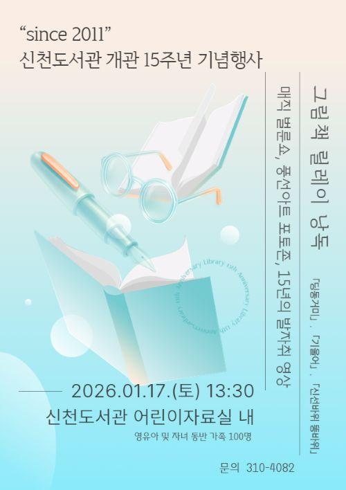 À̹ø Çà»ç´Â 2011³â °³°ü ÀÌ·¡ Áö¿ª»çȸÀÇ Áö½Ä¤ý¹®È °ø°£À¸·Î ¼ºÀåÇØ ¿Â ½Åõµµ¼°üÀÇ ¹ßÀÚÃ븦 ½Ã¹Î°ú ÇÔ²² µÇµ¹¾Æº¸°í ¾î¸°ÀÌ¿Í °¡Á·¿¡°Ô Ã¥°ú »ó»ó·ÂÀÌ ¾î¿ì·¯Áø ¹®ÈÀû °æÇèÀ» Á¦°øÇϱâ À§ÇØ ¸¶·ÃµÆ´Ù. Çà»ç ´çÀÏ µµ¼°ü ÀÔ±¸¿¡´Â Æ÷ÅäÁ¸ÀÌ ¼³Ä¡µÇ°í, °³°ü ÀÌÈÄÀÇ ±â·ÏÀ» ´ãÀº ¿µ»ó »ó¿µ°ú ¹è°æ À½¾ÇÀ» ÅëÇØ ÃàÁ¦ ºÐÀ§±â¸¦ Á¶¼ºÇÑ´Ù.