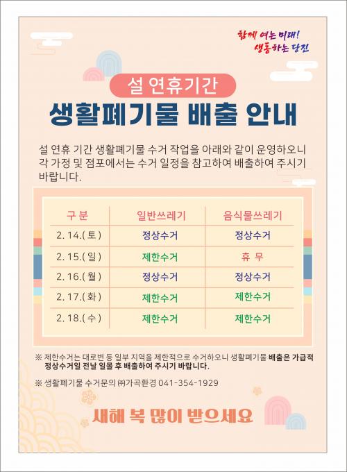 ´çÁø½Ã´Â ¿¬ÈÞ ±â°£ Áß ¹ß»ýÇÏ´Â ºÒÆíÀ» ÁÙÀ̱â À§ÇØ »ýȰÆó±â¹°Àº °¡±ÞÀû Á¤»ó ¼ö°ÅÀÏ Àü³¯ Àϸô ÈÄ¿¡ ¹èÃâÇØ ÁÙ °ÍÀ» ´çºÎÇß´Ù. ¾Æ¿ï·¯ °¢ °¡Á¤°ú Á¡Æ÷¿¡¼´Â ¼ö°Å ÀÏÁ¤À» »çÀü¿¡ È®ÀÎÇØ ¹«´Ü ¹èÃâÀ̳ª Àå±â ÀûÄ¡¸¦ ÀÚÁ¦ÇØ ´Þ¶ó°í ¿äûÇß´Ù.