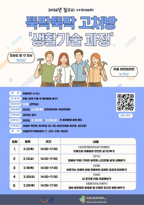 ±³À° ½ÅûÀº ¿À´Â 2¿ù 26ÀÏ ¿ÀÀü 9½ÃºÎÅÍ ½ÃÈï½Ãû ´©¸®ÁýÀÇ »õ¼Ò½Ä¿¡ ¿Ã¶ó¿Â È«º¸¹°ÀÇ Á¤º¸¹«´Ì(Å¥¾ËÄÚµå)¸¦ ÅëÇØ ¼±Âø¼øÀ¸·Î ÁøÇàµÈ´Ù. ½ÃÈï½Ã¹ÎÀ̶ó¸é ´©±¸³ª Âü¿©ÇÒ ¼ö ÀÖÀ¸¸ç, ±³À°ºñ´Â ¹«·áÀÌ´Ù. ´Ù¸¸, ±³À° ¼ö·á ÈÄ °ü³» ÁÖ°Å Ãë¾à°èÃþÀ» À§ÇÑ Áý¼ö¸® ºÀ»çȰµ¿¿¡ ¹Ýµå½Ã Âü¿©ÇØ¾ß ÇÑ´Ù.