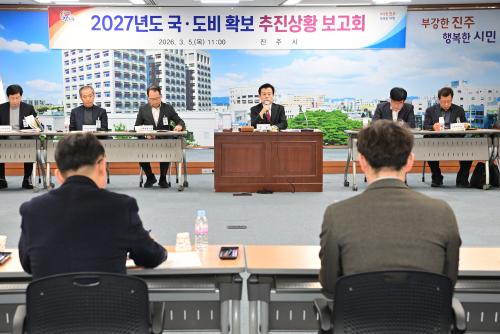[½Åµ¿¾Æ¹æ¼Û °æ³²ÁøÁÖ=±è¸í¼ö±âÀÚ] ÁøÁֽô 5ÀÏ Á¶±ÔÀÏ ½ÃÀå ÁÖÀç·Î ºÎ½ÃÀå°ú ±¹¡¤°úÀå µî °£ºÎ °ø¹«¿øÀÌ Âü¼®ÇÑ °¡¿îµ¥ ¡®2027³âµµ ±¹¡¤µµºñ È®º¸¸¦ À§ÇÑ ÃßÁø »óȲ º¸°íȸ¡¯¸¦ °³ÃÖÇß´Ù.