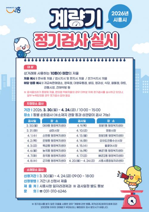 ÇÑÆí, Á¤±â°Ë»ç µ¿º° ÀÏÁ¤°ú Àå¼Ò´Â ½ÃÈï½Ãû ´©¸®ÁýÀÇ °í½Ã°ø°í¸¦ ÅëÇØ È®ÀÎÇÒ ¼ö ÀÖÀ¸¸ç, ÀÚ¼¼ÇÑ »çÇ×Àº ½ÃÈï½Ã ÀÏÀÚ¸®°æÁ¦°ú·Î ¹®ÀÇÇÏ¸é ¾È³»¹ÞÀ» ¼ö ÀÖ´Ù.