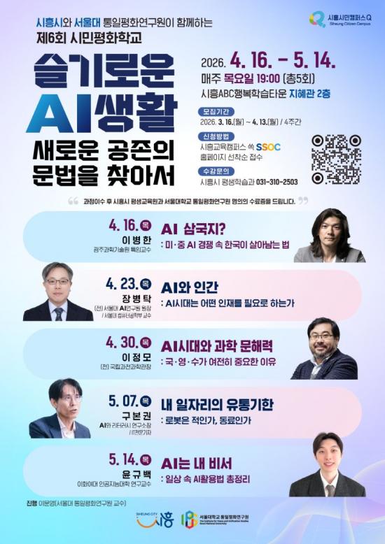À̹ø ½Ã¹ÎÆòÈÇб³´Â ¡®½½±â·Î¿î ÀΰøÁö´É »ýȰ: »õ·Î¿î °øÁ¸ÀÇ ¹®¹ýÀ» ã¾Æ¼¡¯¸¦ ÁÖÁ¦·Î, ÀΰøÁö´É ±â¼ú Ȱ¿ëÀ» ³Ñ¾î Àΰ£°ú ÀΰøÁö´ÉÀÌ ÇÔ²² »ì¾Æ°¡´Â ¹æÇâ°ú »çȸÀû °¡Ä¡¿¡ ´ëÇØ ¸ð»öÇϱâ À§ÇØ ¸¶·ÃµÆ´Ù.