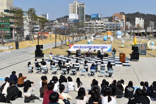 À̳¯ Çà»ç¿¡¼­´Â ¿ÃÇØ û¼Ò³â¼ö·Ã°ü ¼Ò¼Ó 20°³ µ¿¾Æ¸® ´ëÇ¥¿¡°Ô ÀÎÁõ¼­¸¦ Àü´ÞÇßÀ¸¸ç, ÀÌ¾î ¹êµå¿Í ´í½º µ¿¾Æ¸®ÀÇ ¹®È­°ø¿¬ÀÌ ÆîÃÄÁ® Âü¼®ÀÚ ¸ðµÎ°¡ ÇÔ²² Áñ±â°í ÃàÇÏÇÏ´Â ½Ã°£À» °¡Á³´Ù.