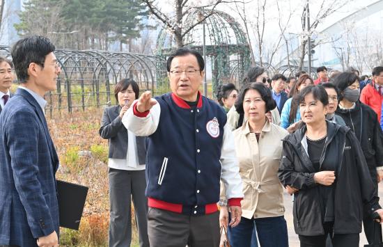 ÀÌÇöÀç Çϳ²½ÃÀåÀº ¡°¸Á¿ùõ°ú ¹Ì»çÈ£¼ö°ø¿øÀº Çϳ²À» ´ëÇ¥ÇÏ´Â ÀÚ¿¬¡¤¿©°¡ °ø°£¡±À̶ó¸ç ¡°Àεµ±³ ¼³Ä¡¸¦ ÅëÇØ ¹Ì»ç¹®È°Å¸®¿Í Àå¹ÌÁ¤¿øÀÌ Çϳª·Î ¿¬°áµÇ¸é ½Ã¹ÎµéÀÌ ´õ¿í ¾ÈÀüÇÏ°í Æí¸®ÇÏ°Ô ÀÏ»óÀ» Áñ±æ ¼ö ÀÖÀ» °Í¡±À̶ó°í ¸»Çß´Ù. ÀÌ¾î ¡°¾ÕÀ¸·Îµµ ½Ã¹Î ü°¨µµ°¡ ³ôÀº »ýȰ ÀÎÇÁ¶ó È®Ãæ¿¡ Áö¼ÓÀûÀ¸·Î Èû¾²°Ú´Ù¡±°í µ¡ºÙ¿´´Ù.