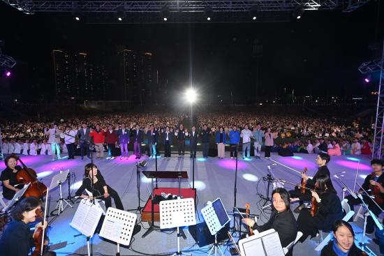 µÑ° ³¯ÀÎ 18ÀÏÀº ¹ÂÁöÄà ¹è¿ì À̰ǸíÀÌ ¸¶ÀÌÅ©¸¦ Àâ¾Æ ½Ã¹ÎÀÌ Á÷Á¢ ÁÖÀΰøÀÌ µÇ´Â °¨µ¿ÀÇ ¹«´ë¸¦ À̲ø¾ú´Ù. »ç´Ü¹ýÀÎ ±¹¾ÇÁøÈïȸ Çϳ²½ÃÁöȸÀÇ ¿ï¸² ÀÖ´Â »çÀü °ø¿¬À» ½ÃÀÛÀ¸·Î, ²ÞÀÇ ¿ÀÄɽºÆ®¶ó Çϳ²°ú ²ÞÀÇ ¹«¿ë´Ü, Çϳ²¿¬ÇվÀÌÇÕâ´Ü µî Áö¿ªÀÇ ¹Ì·¡ÀÎ ¾Æµ¿°ú û¼Ò³âµéÀÌ ¹«´ë¿¡ ¿Ã¶ó ±×µ¿¾È °¥°í´ÛÀº ½Ç·ÂÀ» »Ë³Â´Ù.